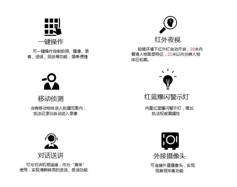 WM视讯平台 WMDSJ-200F 执法仪(法院/政府/城管)拍摄像素高达5000万,广角镜头137,拍摄画面精细而全面,大容量电池支持陆续在工作12小时不断电